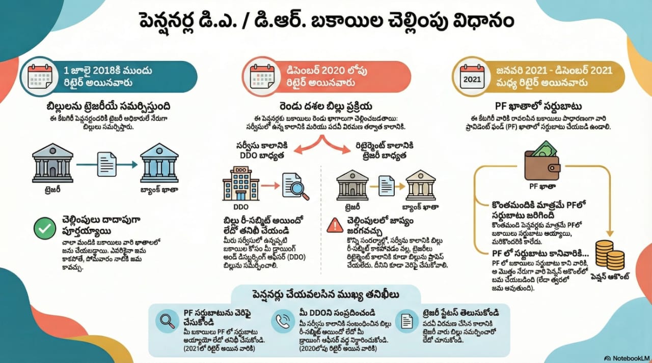 పెన్షనర్ల డి.ఎ/డి.ఆర్ బకాయిల చెల్లింపు విధానం..