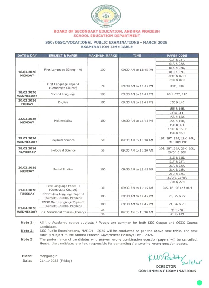 ఏపీలో టెన్త్ పరీక్షల షెడ్యూల్ విడుదల