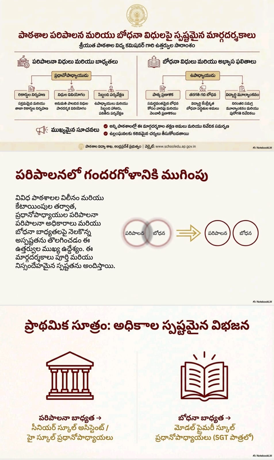 పాఠశాల పరిపాలన మరియు బోధనా విధులపై స్పష్టమైన మార్గదర్శకాలు