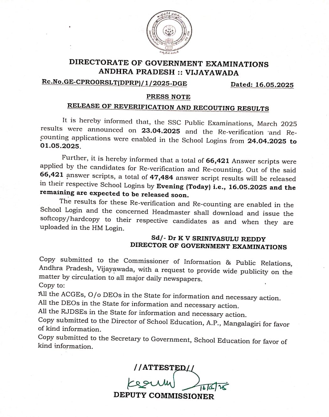AP SSC 10TH Class Re verification - Recounting Results 2025 Download లింక్