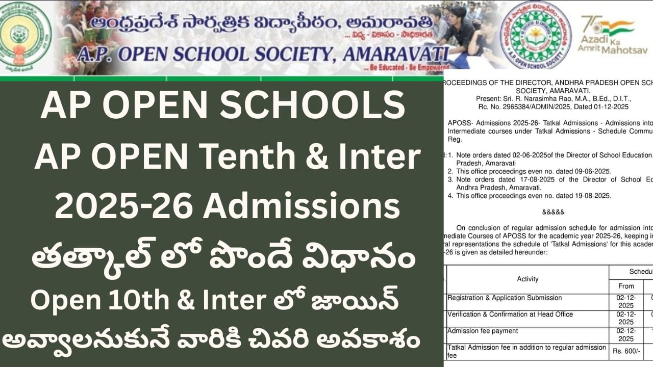 APOSS-2025 OPEN TENTH AND INTER TATKAL ADMISSION PARTICULARS DUE DATES