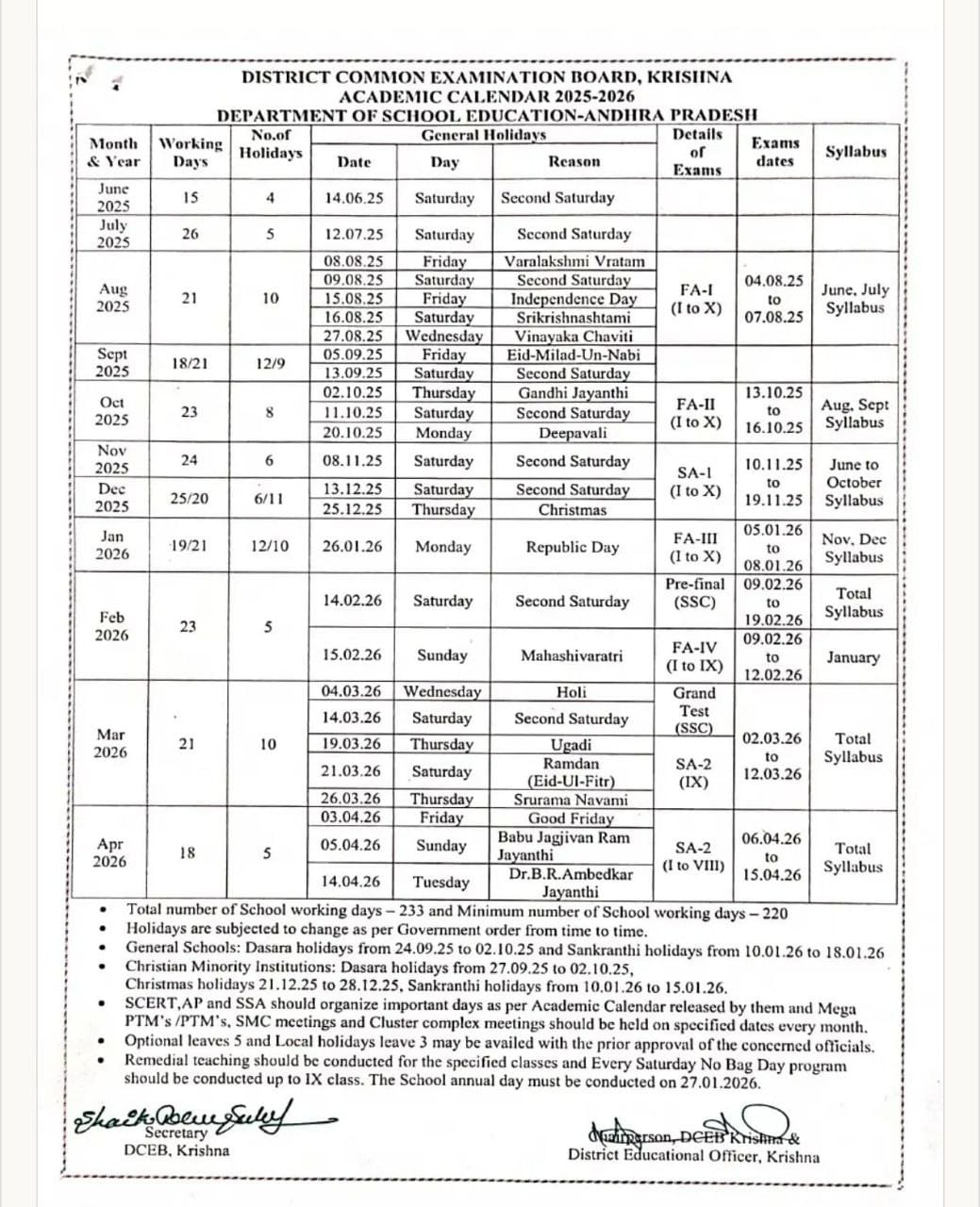 DEPARTMENT OF SCHOOL EDUCATION ANDHRA PRADESH ACADEMIC CALANDER 2025-26 DCEB holidays list 2025-26