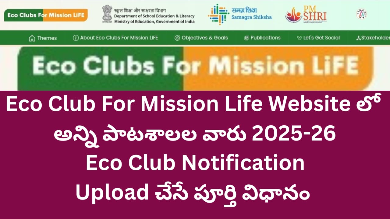 ECO CLUB FOR MISSON LIFE 2025-26 2025-26 విద్యా సంవత్సరానికి సంబంధించి Eco Clubs నోటిఫికేషన్ ను ఆన్లైన్లో అన్ని పాఠశాల వారు అప్లోడ్ చేసే విధానం,ఎకో క్లబ్స్ నోటిఫికేషన్ ఆన్లైన్ రిజిస్ట్రేషన్ లింక్