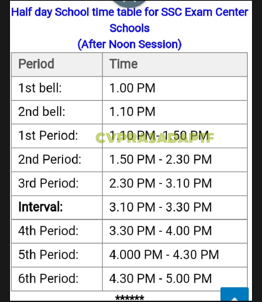 HALF DAY SCHOOL TIMINGS FOR SSC CENTER SCHOOLS