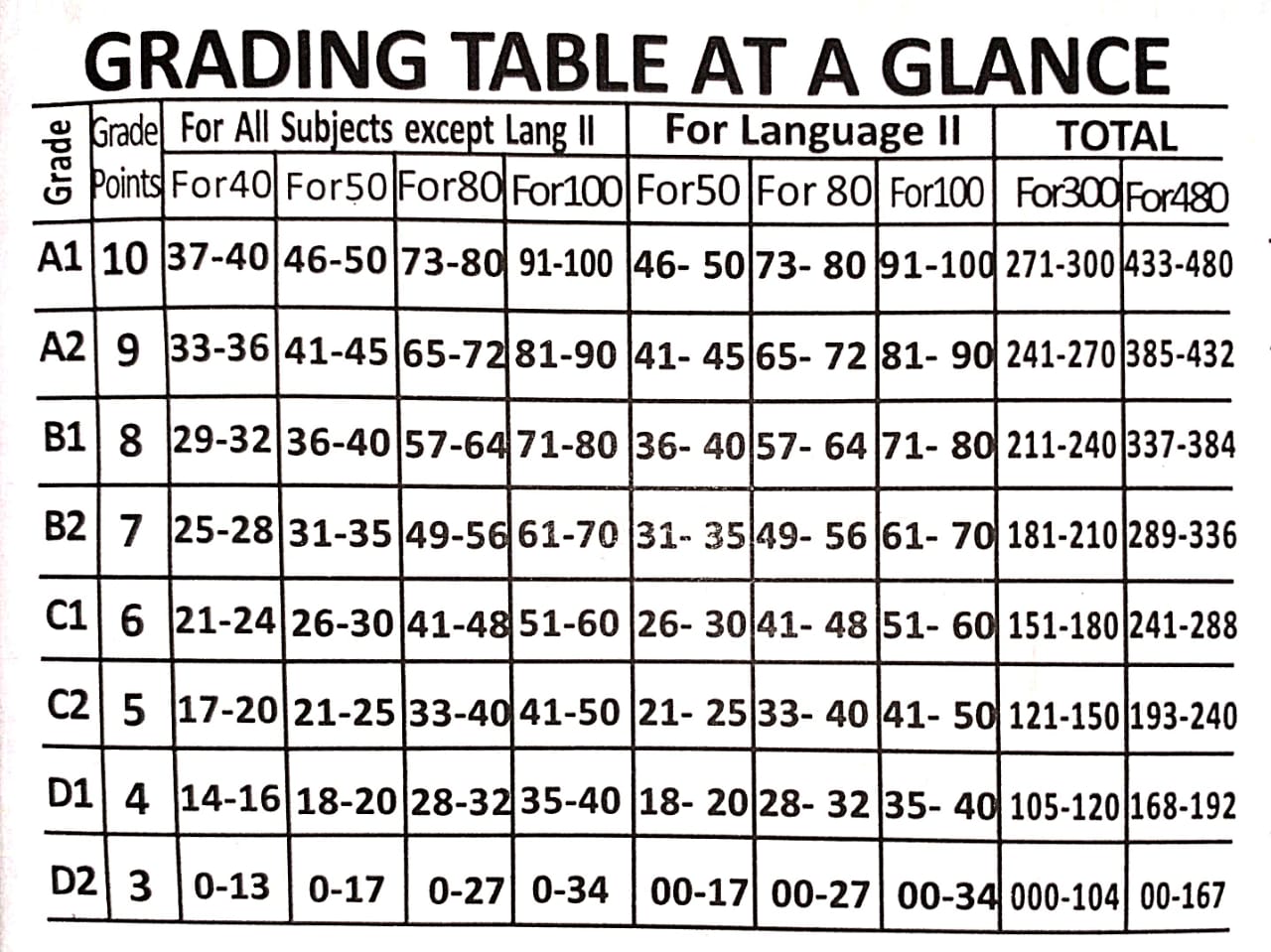 HIGH SCHOOLS GRADING TABLE FOR ALL FORMATS ఉన్నత పాఠశాలలకు మార్కుల గ్రేడింగ్ పట్టిక.