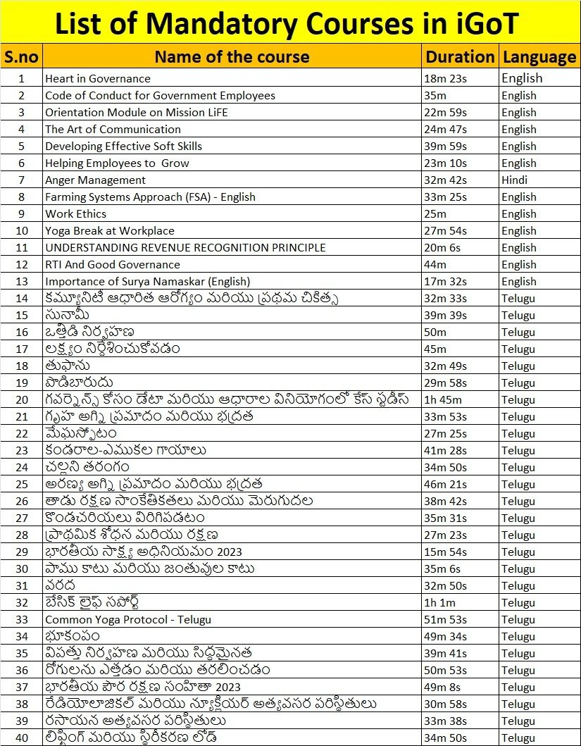 iGOT Karmayogi కోర్సుల Enroll Links,List of Mandatory Courses in iGOT,iGOT Karmayogi యాప్ లో కోర్సులను కంప్లీట్ చేసే విధానం,iGOT Karmayogi App Latest Version