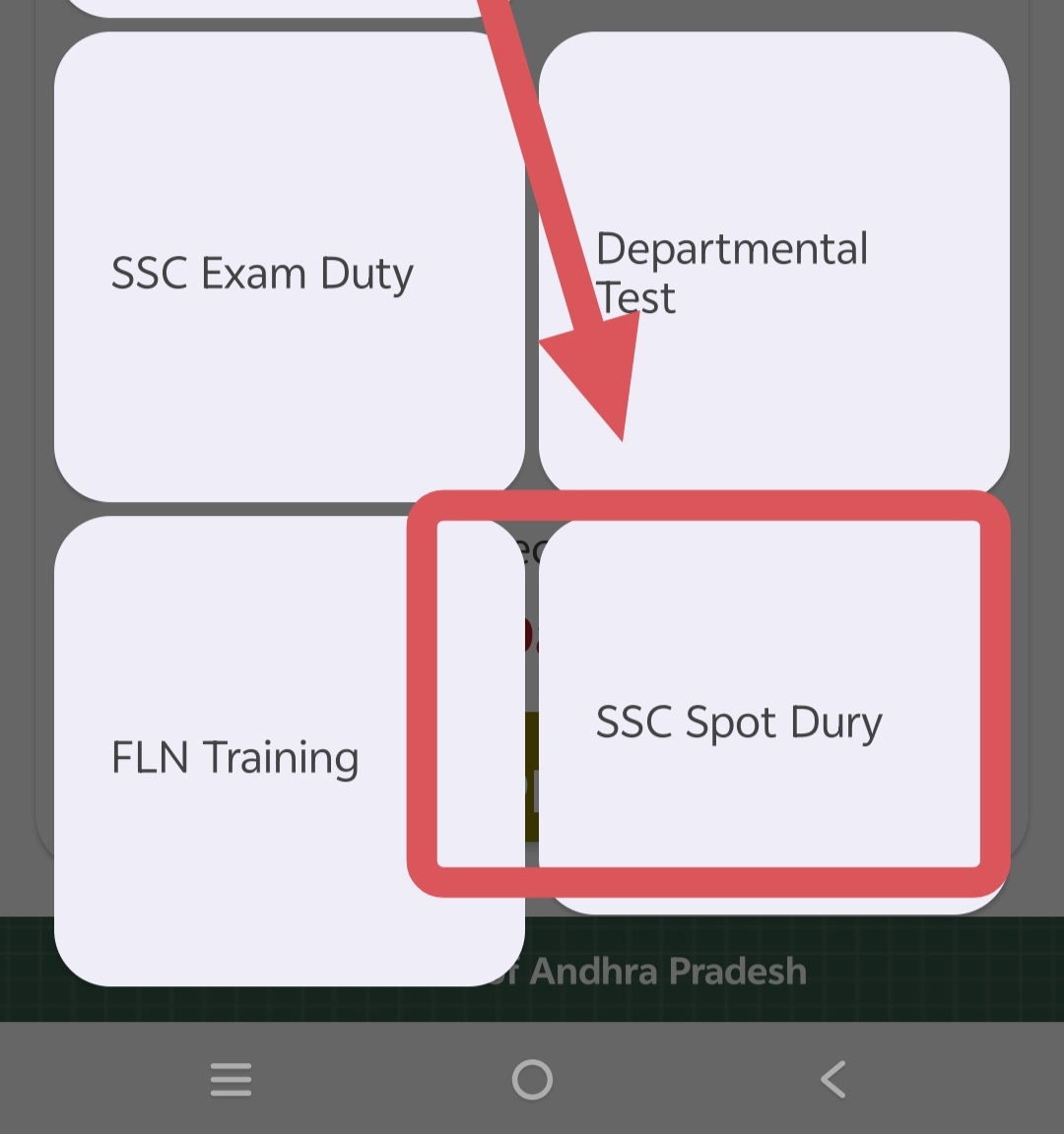 LEAP యాప్ లో లీవ్ మేనేజ్మెంట్లో స్పాట్ వాల్యుయేషన్ డ్యూటీ tile యాడ్ చేయడం జరిగింది. కావున స్పాట్ విధులు కేటాయించబడ్డ అందరూ వెన్యూ ఎంటర్ చేసి... Sopt center వద్ద ఫేసియల్ అటెండన్స్ వేయవచ్చు