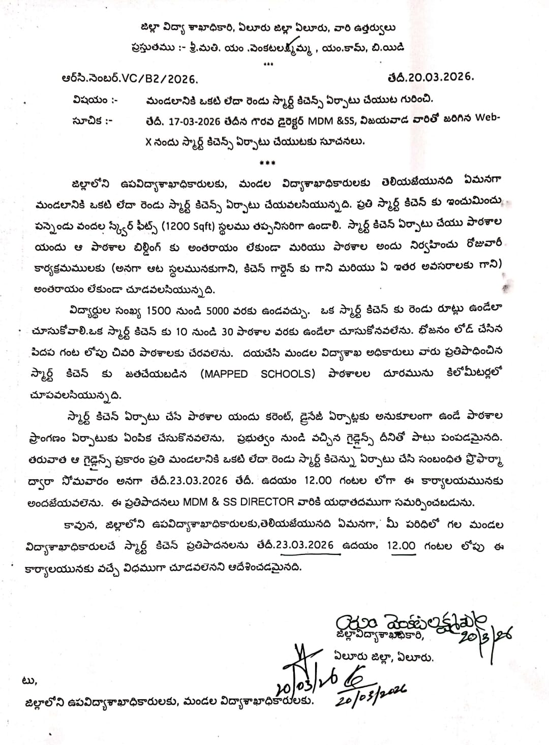 మండలానికి 1 లేదా 2 స్మార్ట్ కిచెన్స్ ఏర్పాటు – ఆదేశాలు