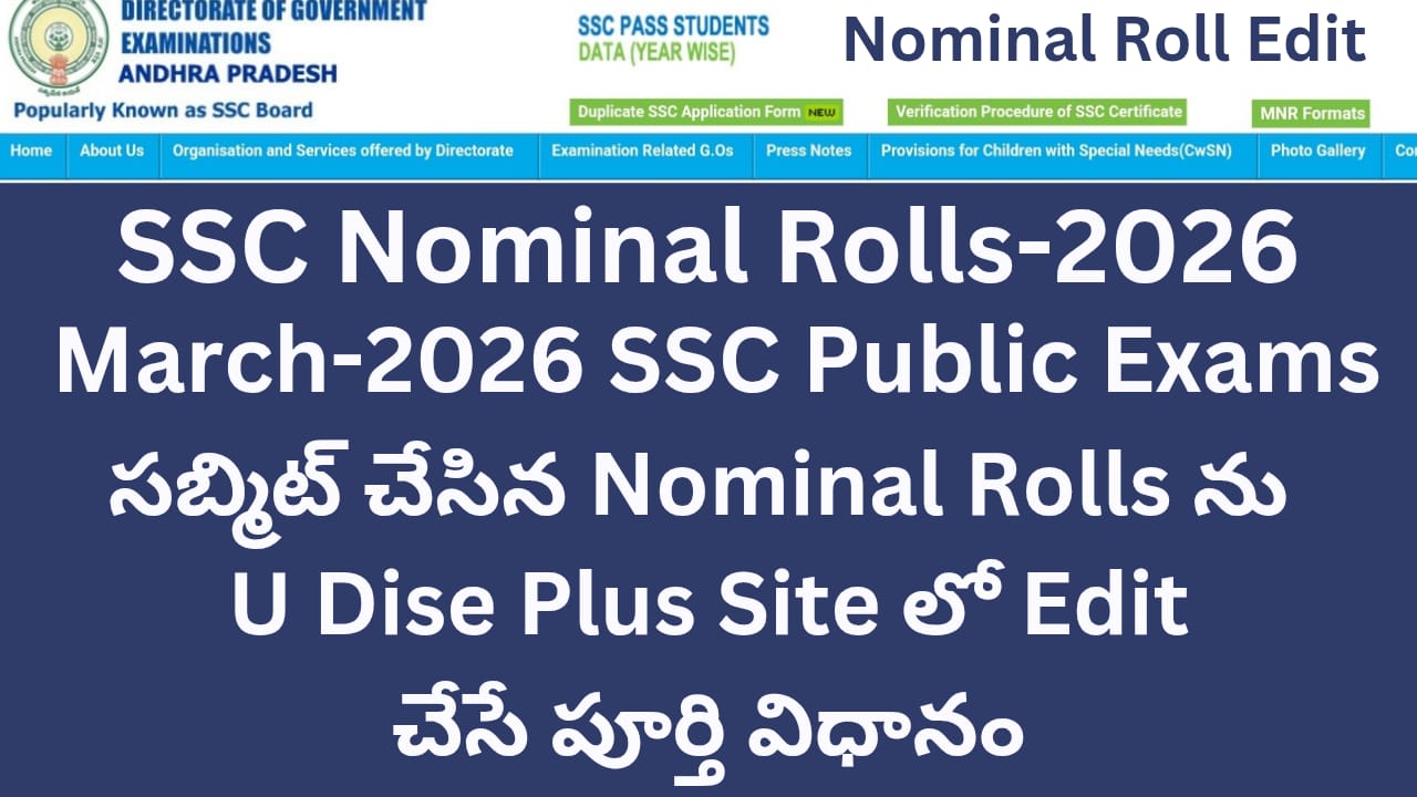 ఆల్రెడీ సబ్మిట్ చేసిన పదవ తరగతి విద్యార్ధుల నామినల్ రోల్స్ Exam Details ను U Dise Plus సైట్ లో ఎడిట్ చేసే పూర్తి విధానం క్రింది వీడియో లో కలదు