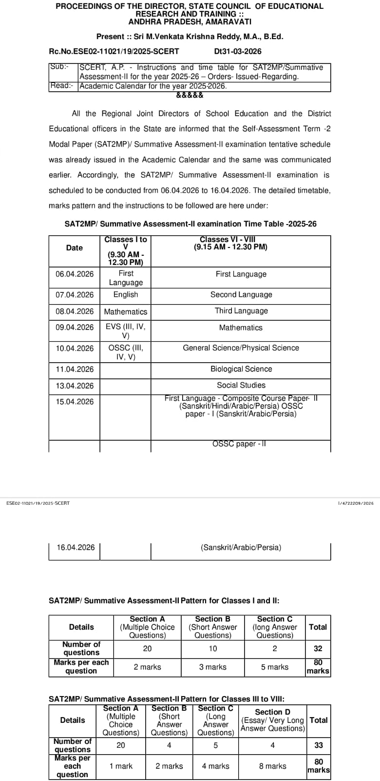SUMMATIVE ASSESSMENT-2 TERM-2 2006 APRIL EXAMINATION SCERT OFFICIAL TIMETABLE