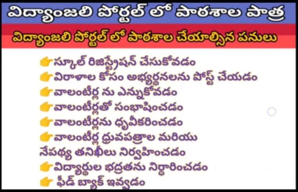 విద్యాంజలి పోర్టల్ లో పాఠశాల పాత్ర విద్యాంజలి పోర్టల్ లో పాఠశాల చేయాల్సిన పనులు